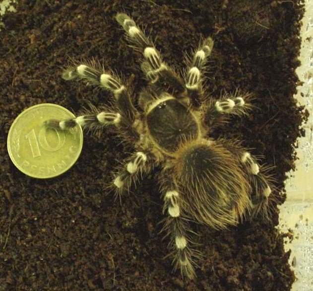 Weißknie Vogelspinne (wird auch weiße smithi genannt) Acanthoscurria geniculata ist eine der schönsten und größten bodenbewohnende Vogelspinnen Brasiliens. Problemlose, robuste Art.