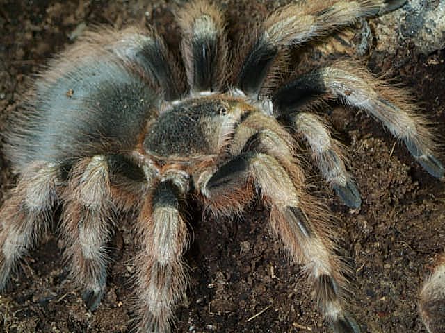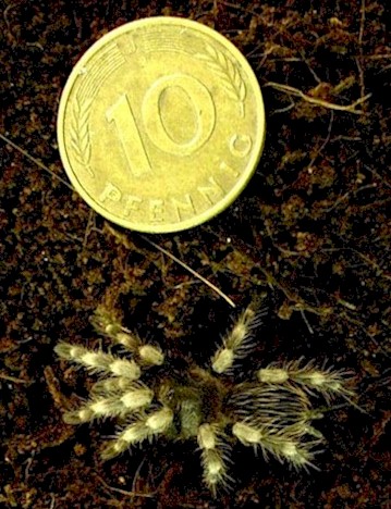 Brazilopelma colloratovilosum ist eine schöne, neue, gut haltbare Art aus Brasilien, sie ist sehr farbig und mit langer weißer Behaarung.